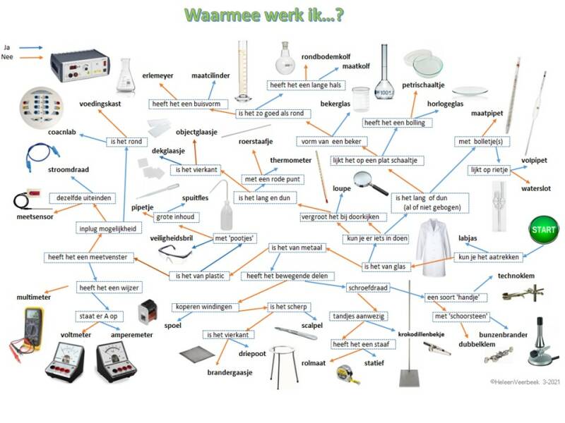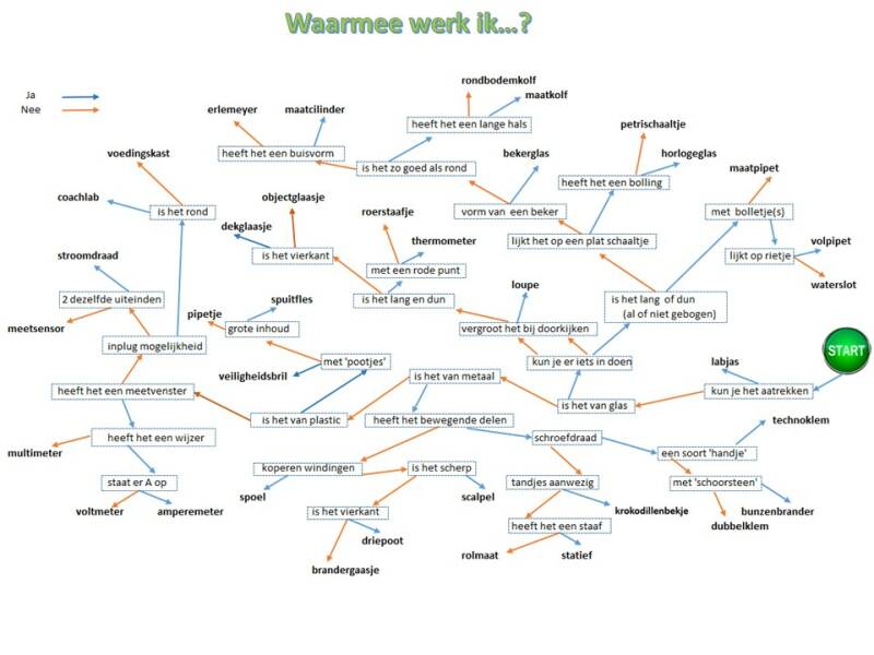 Hoe het afgebeelde item heet kun je bepalen door je vraag-stappen te beantwoorden. (Hiervoor kunnen ook de items zelf gebruikt worden)